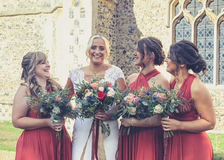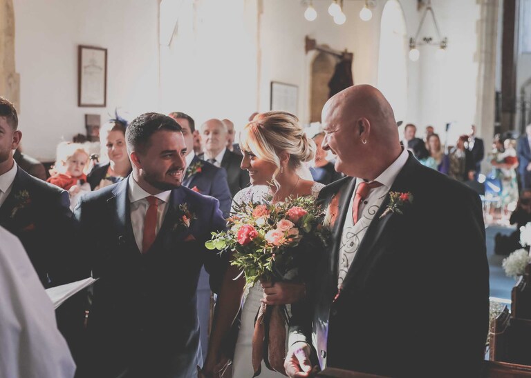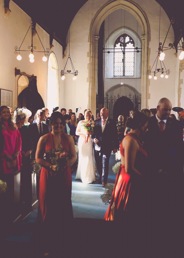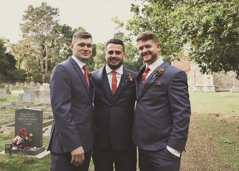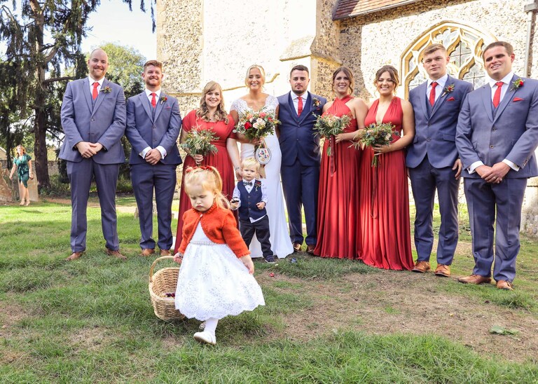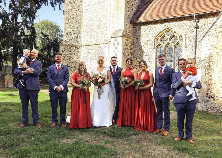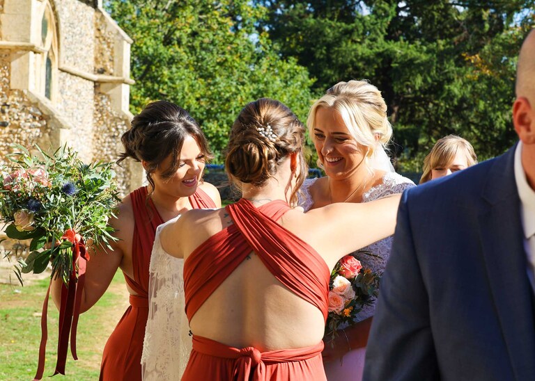 I started with Larissa getting ready at home and at Chippenham Park. Her bridesmaids wore a beautiful, burnt orange which was so autumnal and Larissa had a gorgeous fitted dress with such pretty flowers. David started with Will and his boys arriving at the church when they were already suited and booted, looking handsome and ready to go. It was great to work alongside David (DG Pictures) again as we’d previously photographed alongside him at two other family weddings over the years and he’s always a lovely chap to be around and brilliant at his job.