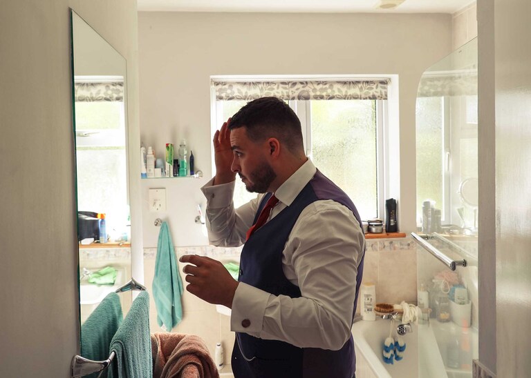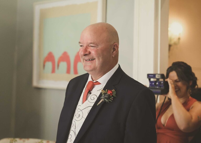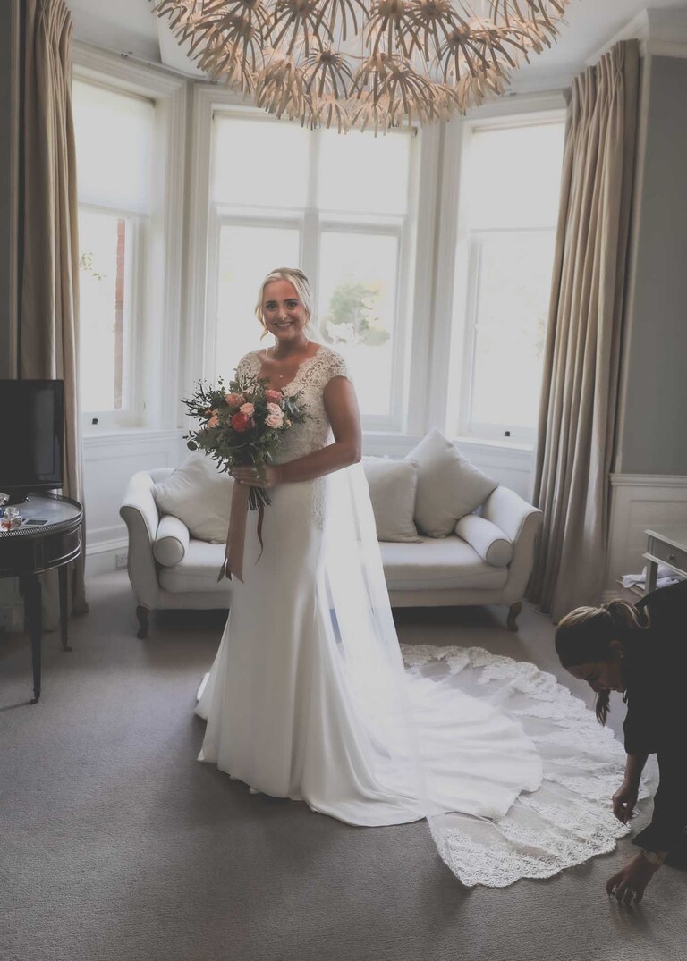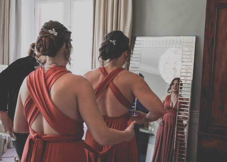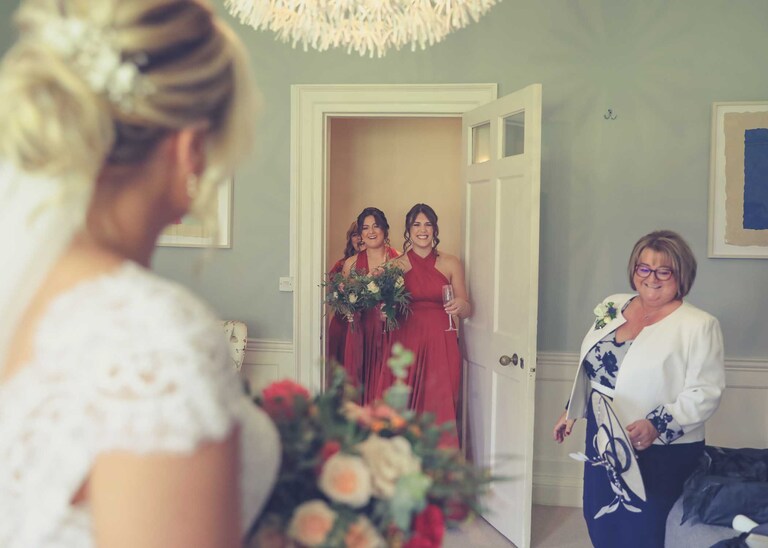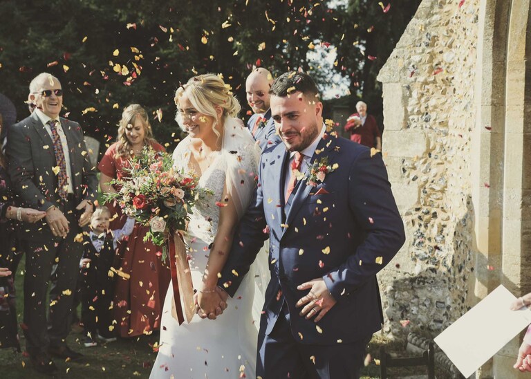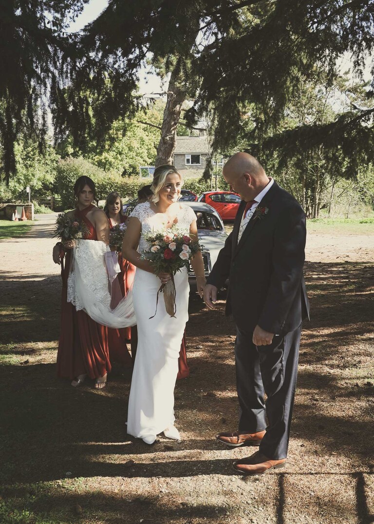 I started with Larissa getting ready at home and at Chippenham Park. Her bridesmaids wore a beautiful, burnt orange which was so autumnal and Larissa had a gorgeous fitted dress with such pretty flowers. David started with Will and his boys arriving at the church when they were already suited and booted, looking handsome and ready to go. It was great to work alongside David (DG Pictures) again as we’d previously photographed alongside him at two other family weddings over the years and he’s always a lovely chap to be around and brilliant at his job.
